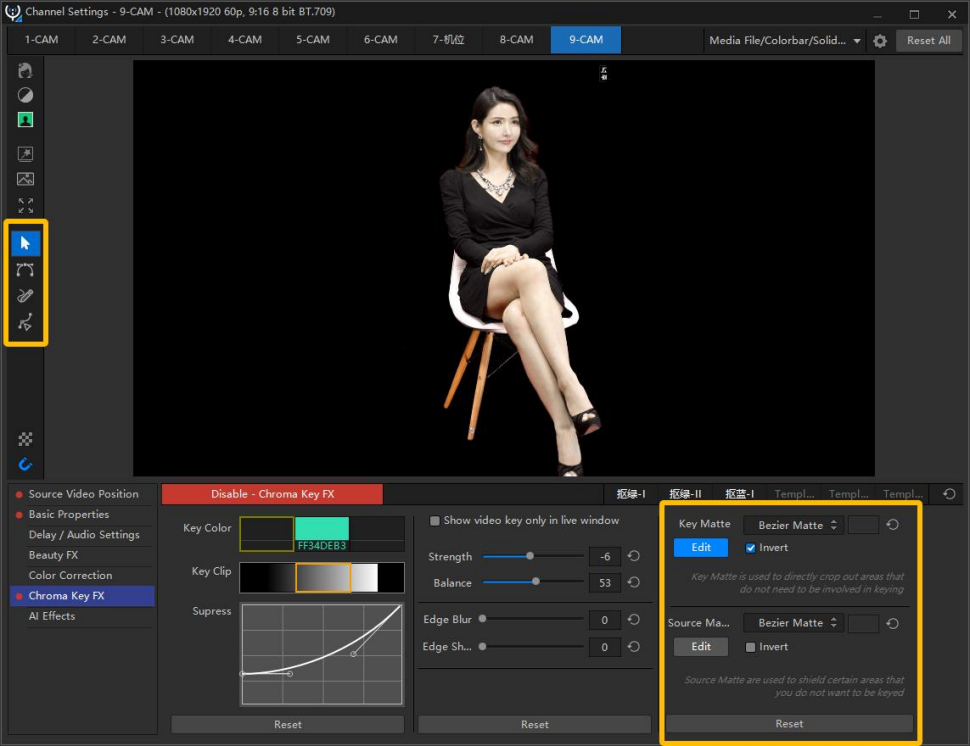5. Added Bezier curve mask for key matte and source matte, allowing users to create key matte and source matte quickly using Bezier curves and freehand drawing tool to remove or retain specific parts of the image.